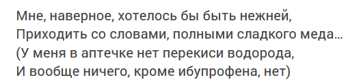 Я писать стихи не умею. Теорию не знаю. Поэтому анализа «правильности» написания стихов не будет. Я буду говорить об эмоциях и мыслях, которые стихи вызывают.