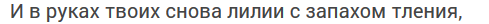 Возможно, я слишком цепляюсь к словам, ведь лилии пахнут правда довольно странно. Но ведь любовь все делает лучше. Все делает ярче, красивее, мелодичнее…