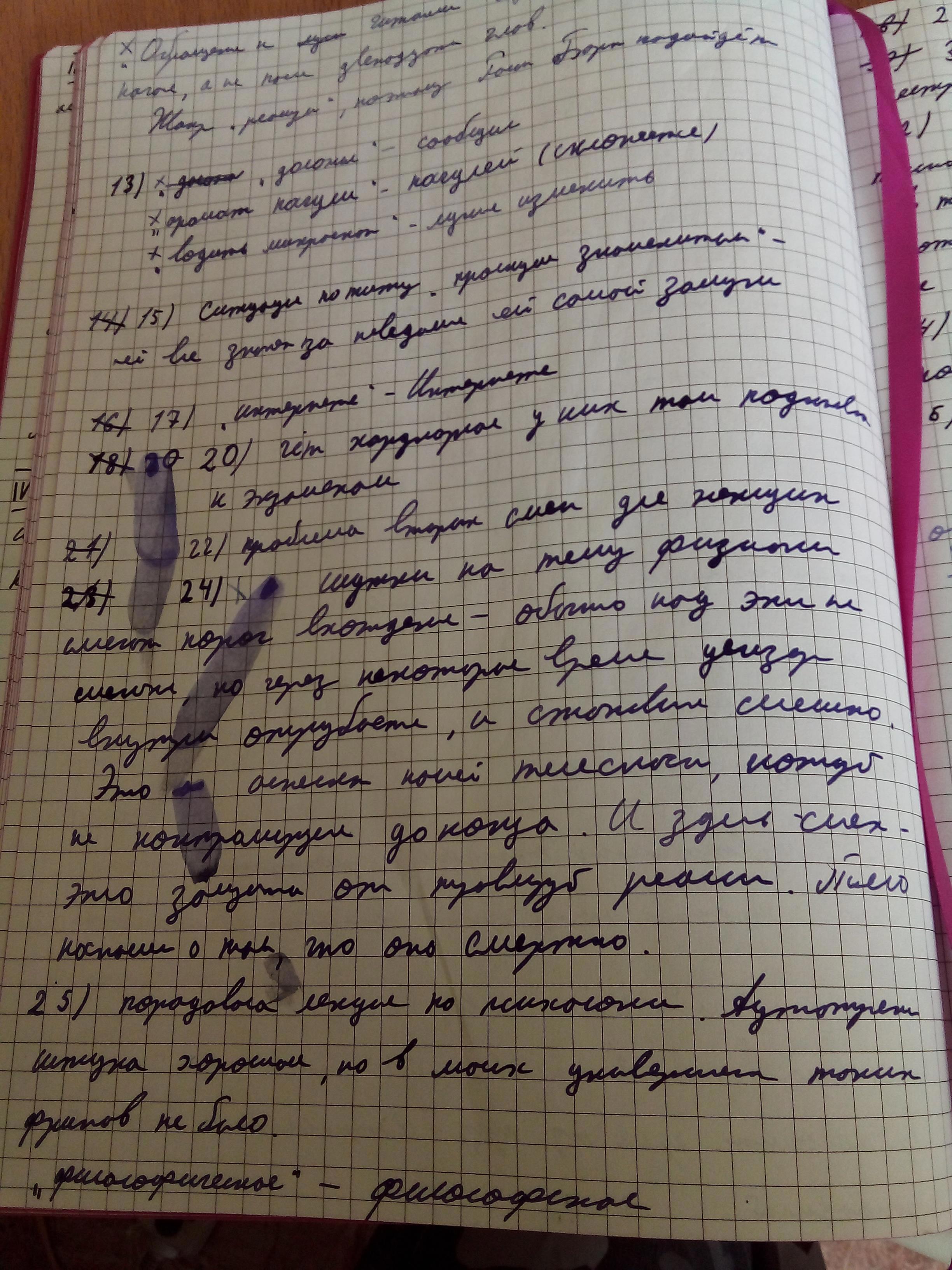 На фото часть небольшого конспекта по главам — для удобства ориентации. С пятнами от потёкших чернил