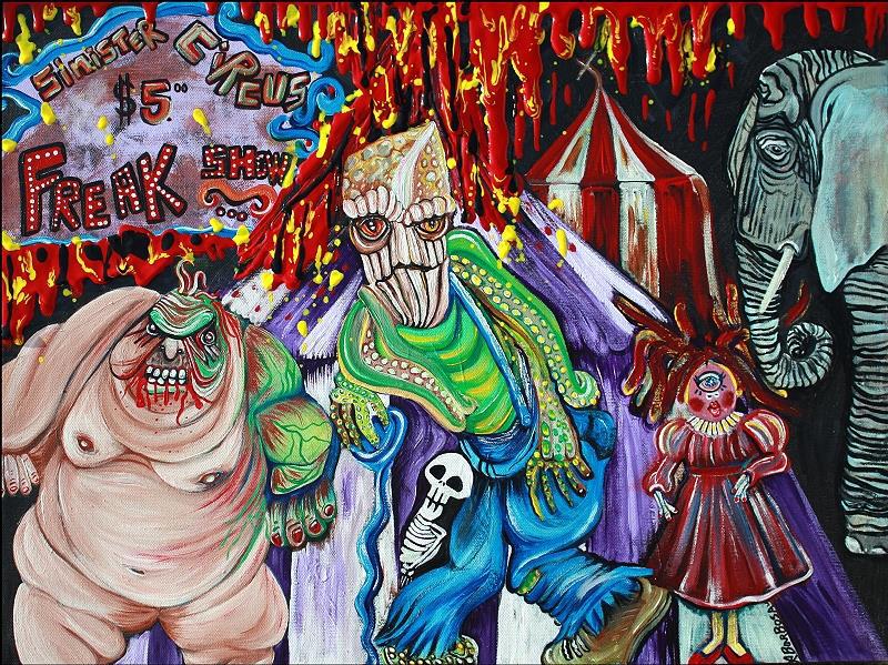 Мне этот город напомнил липкую ленту, свисающую с потолка и предназначенную для ловли мух. Только вместо этой жужжащей гадости в плен к Псыуфше попадают люди. Стоит только зайти в лес, пообщаться кое с кем, кто именует себя немного немало «тварями божиими». Именно они по достоинству оценили рисовальный талант тогда еще юного Левы Выхина. А тот увлекся, начал рисовать одну карикатуру за другой, сопоставляя их с дразнилками из старой советской книги. Так и получилась небольшая компания монстров, где у одного шляпа из гвоздей, у другого едва не трещащее по швам свадебное платье, и так далее.