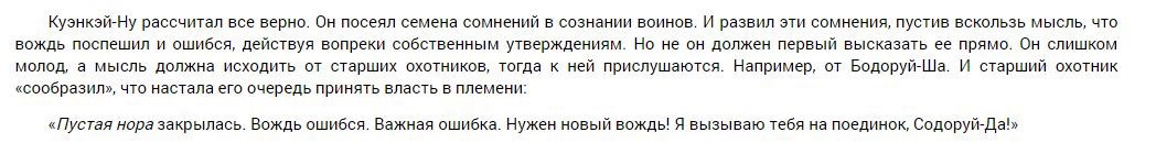 Приведу еще один коротенький пример из одной из своих книг. (Это не скрытая реклама(!), не считайте это ею(!). Это просто — маленький сравнительный анализ того как два разных автора обыгрывают одни и те же нюансы, про которые основная масса писателей забывает вообще(!))