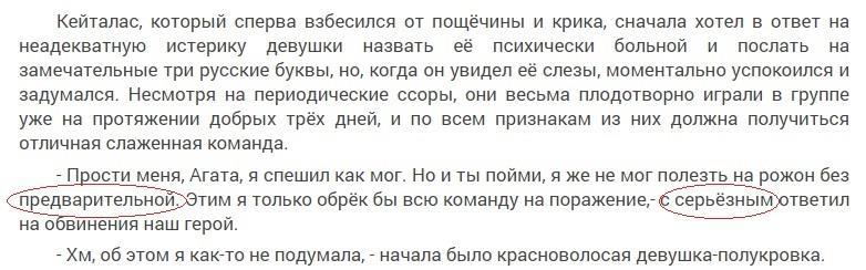Пример второго: действия персонажа Ромарика.