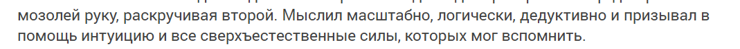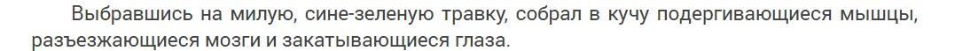 Язык и стилистика. Стиль у автора очень специфический. О нём можно говорить долго, но я лучше приведу несколько типичных примеров.
