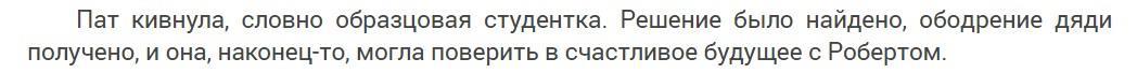 Больше всего вопросов у меня возникло по поводу достоверности изображения взаимоотношений Роберта с Пат. Эта сюжетная линия довольно-таки сумбурна. Оба персонажа временами ведут себя неестественно, особенно Патриция с её мечтами о любви «галльского вождя» и тайными слезами.