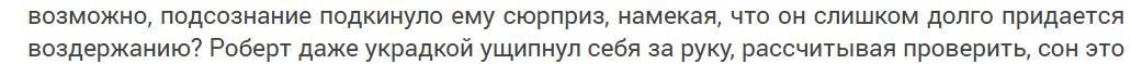 Тем не менее, роман достаточно увлекателен – интересно узнать, как скоро и каким образом Роберт наведёт порядок в этом «распрекрасном» мире. Судя по 14-й главе, где он наконец-то высказал открытым текстом всё, что о нём думает, это должно рано или поздно произойти.