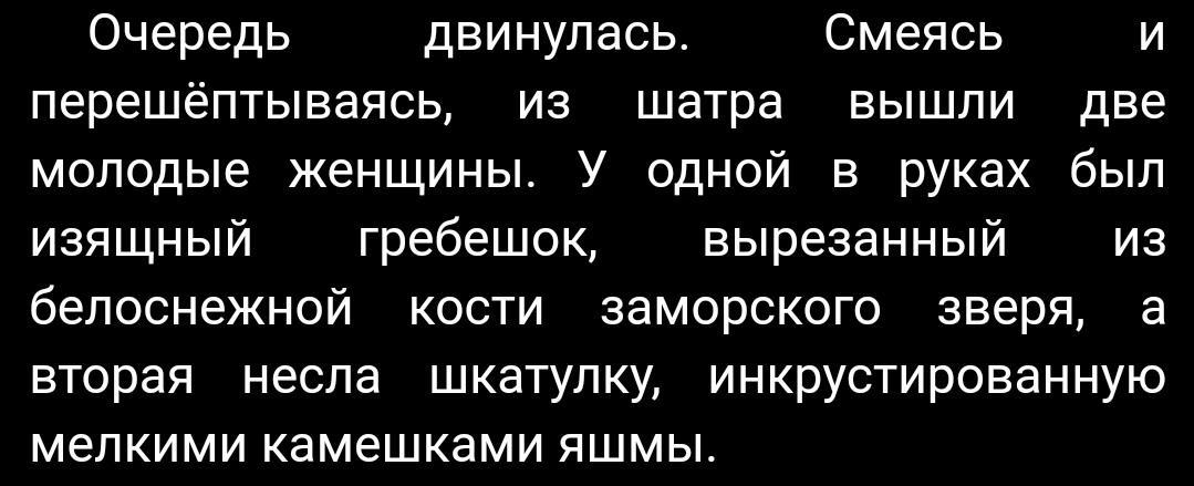 Язык повествования легкий для восприятия, образный, богатый на средства выразительности. Благодаря метким эпитетам, неожиданным, но четким сравнениям, автор погружает читателя в атмосферу. Речь не перегружена сложными конструкциями, а описания природы и героев завораживают. Однако иногда встречаются сложные термины: «инкрустированную мелкими камушками яшмы». Слово на миг выбивает из атмосферы волшебства и таинственности.