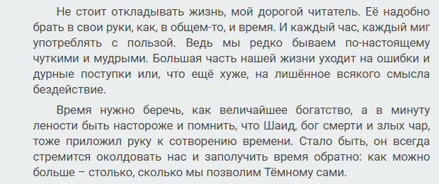 Повесть подойдет как юным и не искушенным умам, так и тем, кто молод душой и не озлоблен. Можно для прочтения вслух, в кругу семьи, тихими и уютными вечерами, если кто-то сохранил ещё такую традицию.