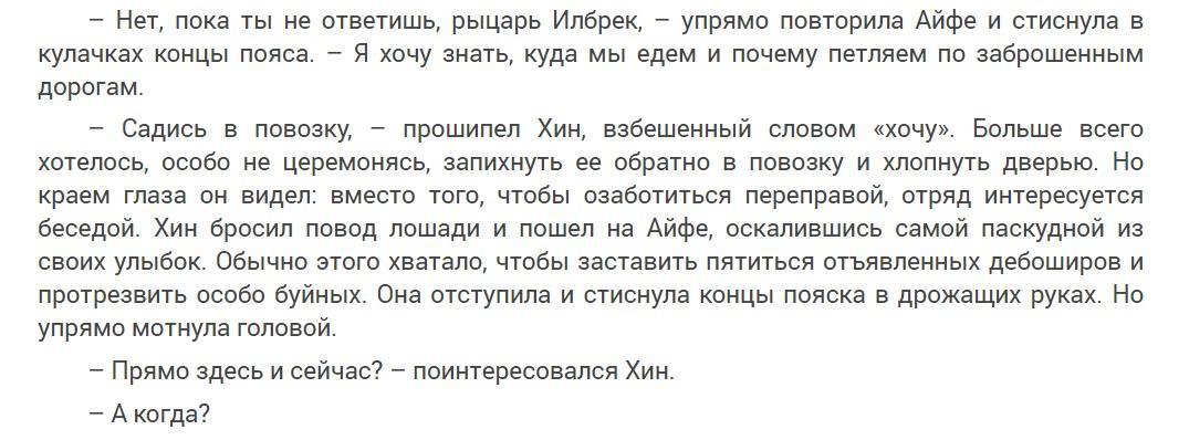Здесь я что-то не совсем понимаю логику. Айфе нужно же достать меч - почему она говорит о том, что ей не под силу убить принца? И Хин тоже говорит про её поединок с принцем, хотя пообещал убить Грейда.