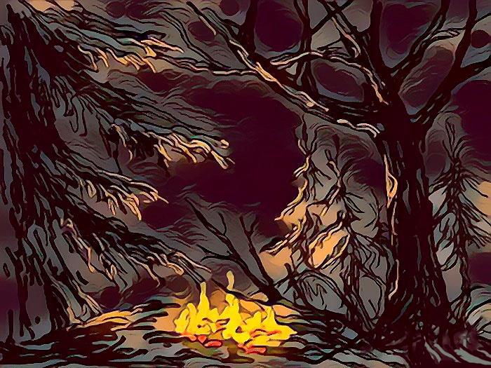 Спасибо, автор. Позвольте, пожалуйста, подарить вам картинку, нарисованную под впечатлением - лесной костёр.