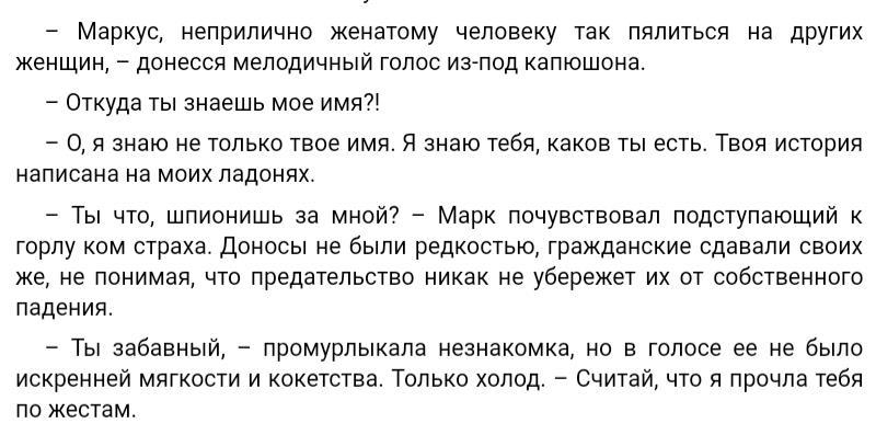 Марк же тянется за Энигмой потому, что ему надо заполнить чем-то пустоту в душе, образовавшуюся после исчезновения жены - хотя бы поисками Ивы. И еще он хочет во всем разобраться, а в одиночку ему этого, увы, не сделать.