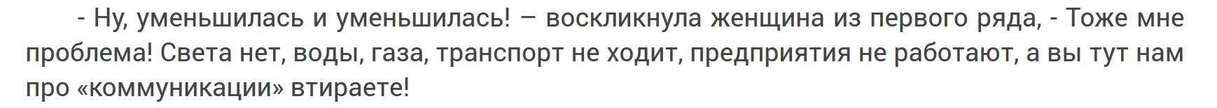 Вот автор сам подтверждает сей факт. А из этого следует, что находиться в городе невозможно. Наше жилье, без воды и электричества, становится просто бетонной коробкой. Готовить невозможно, санузлы не работают, отопление тоже. В квартирах мигом появится антисанитария и условия из которых все побегут куда глаза глядят. Наступит период выживальщиков. Т.е. людей имеющих опыт выживания в экстремальных условиях с оружием, в первую очередь с огнестрельным. Власти пока не решат коммунальные проблемы практически бессильны. На мой взгляд, если уж оставаться реалистом, то выжить можно только за городом, охотясь и мародерствуя. Впрочем, дичь быстро выбьют, а все что можно растащить — растащат и начнется полный беспредел. Появятся банды вооруженных и голодных, готовых на все. И не факт, что силовые структуры этот беспредел не возглавят. И хорошо, если с военных складов начнут выдавать припасы и продукты, организовывать палаточные лагеря и прочие пункты выживания для народа. Думаю, есть такие сценарии на гос. уровне. Мне например известно, что есть сценарии развертывания армией пунктов питания, работы передвижных хлебозаводов. Сам ел хлеб, произведенный на таких заводах: двухкилограммовые кирпичи-буханки. В общем, есть сценарии отработанные на гос. уровне.