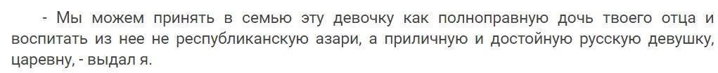 ГГ предлагает в случае чего уронить на Луну астероид, чтобы уничтожить тамошнюю американскую базу (просто так, а че такого?), все окружающие, в том числе и его папаша-император, пищат от восторга, удивляясь, как это раньше не додумались, и спрашивают, откуда он такой умный план взял? ГГ честно отвечает, что в интернете экстранете прочитал. Чувствуете уровень? Но это еще не все. Он предупреждает папашу-императора, что азари опасны, так как размножаются без физического сексуального контакта как такового, и могут заделать себе ребенка от кого-то из императорской семьи чтобы претендовать затем на престол великой и прекрасной Российской империи. Потому что не может быть такого чтобы не хотели. И они хотят, разумеется. А в качестве подтверждения своим словам ГГ предоставляет сведения про размножение азари… да-да, из экстранета. Папаша-император не знает об этой ключевой особенности азари – он слишком туп даже для того чтобы просто зайти в экстранет. Соответственно, что собой представляет его администрация, тоже не рассказавшая ему об этом, говорить не надо. Но папаша-император не переживает, что на него работают умственно отсталые, он, как уже говорилось, и сам слишком туп, чтобы париться о таком.