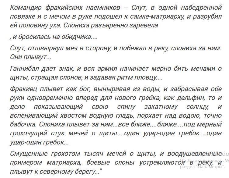 Глава 19. Здесь говорится о Ганнибале, фракийцах, боевых слонах и Геракле. Правильно, автор, чего мелочиться? Всё пускайте в дело. В главе есть яркие сцены. Вот моя любимая: