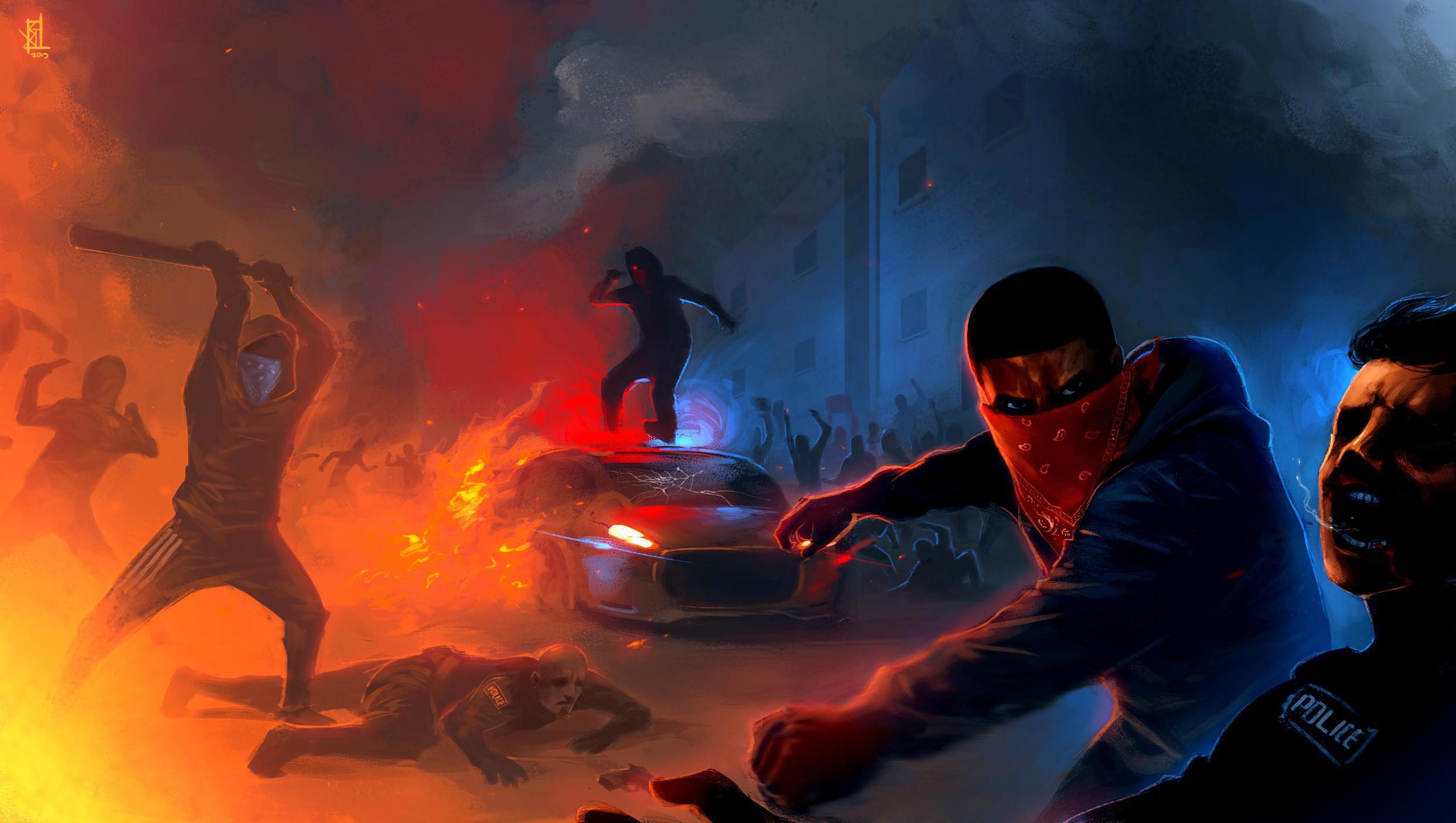 У обывателей копится раздражение и ненависть, и когда они доходят до точки кипения (или им помогут), то загорается мятеж, бунт всех против всех, бессмысленный и беспощадный. Тогда власти силами служб безопасности проводят почти армейскую операцию, карая направо и налево всех, кто под руку подвернется.
