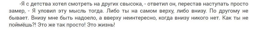 ОК, идём дальше. С течением времени у амбициозного эгоиста происходит некоторая переоценка ценностей, чего нельзя сказать о его командире, майоре Немове. Тот как был закостенелым в своих имперских амбициях дятлом, так им и остался. Объяснение этому очень простое, и майор не скрывает своего стремления возвыситься за счёт социального неравенства: