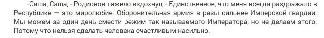 Империя — это жуткая гремучая смесь лжи, милитаризма, нищеты народа и роскоши правящей верхушки. Понятно, что это государство хочет уничтожить Республику, чтобы оболваненный имперской пропагандой народ не узнал о ней правды и не захотел жить так же.