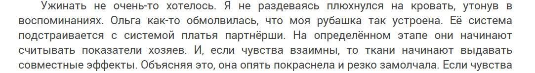 В романе есть ещё много разных фишек - например, Система, с одной стороны, настроенная на помощь людям в разных ситуациях, а с другой - позволяющая отслеживать чуть ли не каждый их шаг. Или одежда, способная определять не только настроение хозяина, но и его эмоциональную совместимость с партнёром.