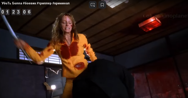 Или там триады были? Ну хз, может и они. Но про якудзу я точно знаю, что они все в татуировках. Или, вспоминаются кадры из фильма «Убить ДеБила» где толпу злобных якудзей в костюмах, мочит ушлая блондинка в шмоте от фирмы «Я люблю Брюса Ли». Но почему я подумал именно про этот фильм? Да потому что там в конце махача, эта блондинка, хватает несчастного якудзу и лупит его мечем по жопе.