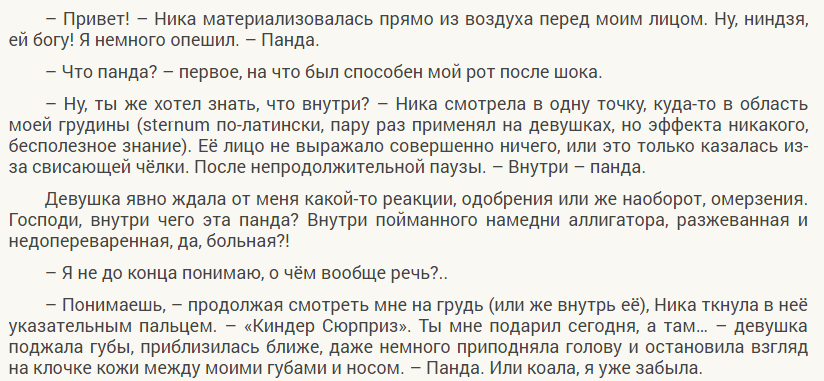 Конечно, не исключаю, что особо эмоциональным читателям эта история любви будет бледной и недотянутой, но для человека вроде меня такая дозировка чуЙств — в самый раз.