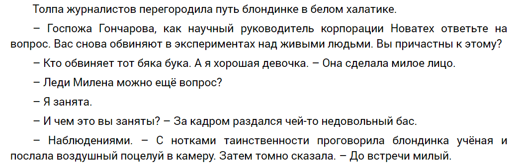 Допустим, сравним с оригинальным Замятином, которого упоминали в тексте. Вот как у Замятина разговаривают аристократы: