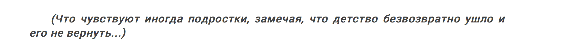 Вот это мне очень понравилось. Никогда ни о чём таком не думала в подростковом возрасте. Радовалась, что я больше не "малышня" и ждала 18. (Наивная не знала, что в 25 приду на АТ и буду тут малышнёй, по сравнению с другими авторами.) Стихотворение "Детство" чудесное.