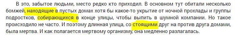 Если взять главную героиню, то сопереживать ей невозможно вообще. Автор пытается нагнетнуть ужаса, описывая ее переживания, но упорно не хочет рассказать ПОЧЕМУ она боится. Если взять классику, типа "Оно" то у страхов там есть предыстория в виде пропажи детей, дети боятся всего незнакомого потому, что некоторых буквально жрут живьем. И даже так, они не боятся клоунов и прочих безобидных вещей прямо сходу. Только выяснив источник, они начинают его бояться. А тут девочка тупо с первых строк боится до усрачки... чего? Заброшенных домов? Это фобия такая, что ли? Нельзя нагнетать атмосферу ужаса просто описывая как персонажу страшно, надо объяснить почему ему страшно.