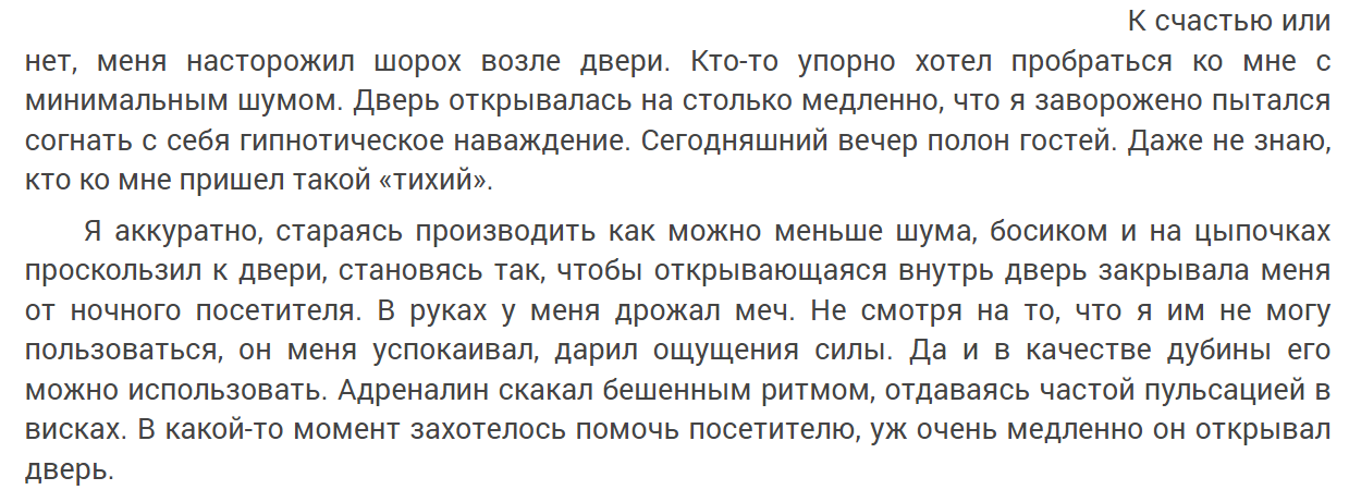 Оговорюсь, что приведенные отрывки контрастные: остальная часть текста намного спокойнее.