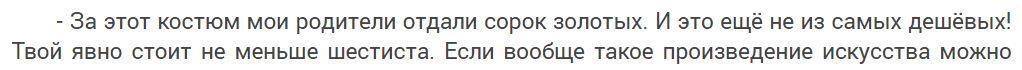 Ещё я заметил одну сюжетную ошибку. У сотрудницы главного героя есть двоюродная сестра. Она очень хорошо разбирается в тенденциях моды и всё свободное время проводит в походах по магазинам и ателье. Разумеется, отлично ориентируется в ценах. Когда у ГГ возникла необходимость в смене гардероба, она вызвалась помочь. И сразу узнала сумму, на какую можно совершить покупки: