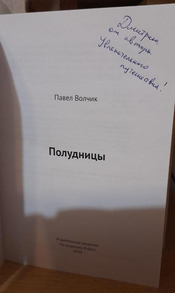 Мне посчастливилось прочитать роман «Полудницы» на бумаге, ощутить всю полновесность довольно увесистого тома, с необычной и загадочной обложкой. А ещё у меня есть автограф автора, ведь он лично подарил мне свою книгу, когда в 2021 году мы познакомились на Национальной молодёжной Литературной премии в Москве.