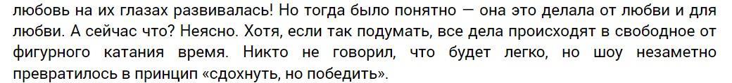 Прежде всего, мне показалась неуместным сравнение выбывающих из конкурса участников с гибнувшими в бою солдатами. Совершенно лишняя параллель. И возникает вопрос - а стоят ли любые победы на телешоу того, чтобы у человека от усталости пропадало желание даже обнять своего ребёнка?