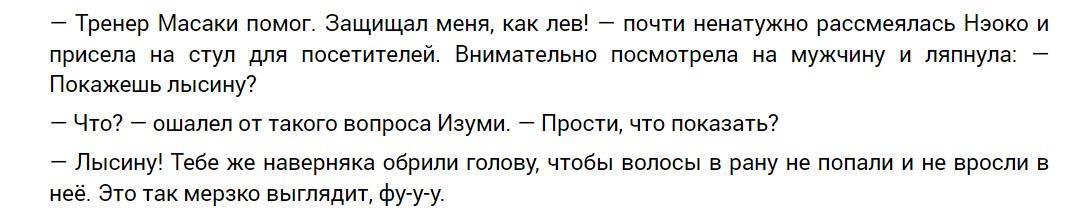 Вот она приходит в больницу к Изуми и пытается его развеселить очень оригинальным способом: