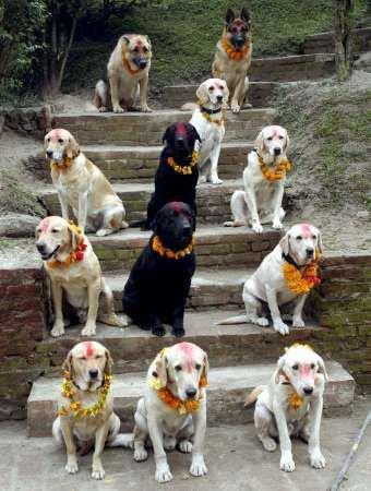 Традиционные собачки моих рецензий - сегодня с празднования в Индии. Не псы Калки, конечно, но стараются:).