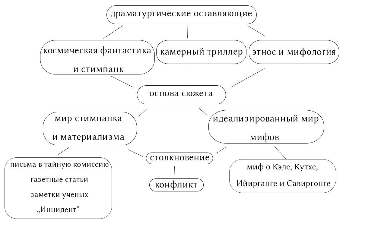 Т.е. здесь мы видим первоначальный костяк истории: элементы этноса и мифов, камерного триллера и космической фантастики и стимпанка. И основу сюжета, вытекающую из этого причудливого смешения - столкновение материалистического мира и мифического-мистического представления о нем. К каждому из этих миров прикреплены элементы, которые встречаются нам в тексте. В конце главы мы часто можем обнаружить газетную вырезку или статью британцев об исследованиях черного льда или записи об Инциденте, или миф о Кутхе и его сыновьях. Все это замечательно расширяет лор. Ну и естественно мы видим как формируется конфликт.