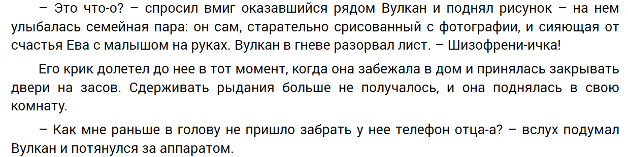 Поначалу центральный персонаж – Вулкан, и вдруг фокал стремительно и без объяснения причин перемещается к Еве.