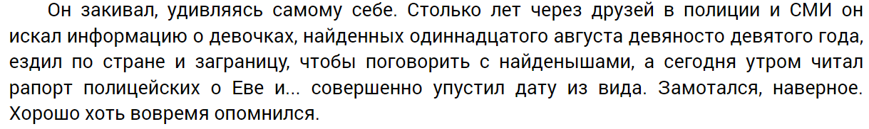 Долгие годы искал информацию о девочках, найденных 11.08.1999 г., а тут увидел такую девочку и… упустил из виду. Читатель должен поверить?!