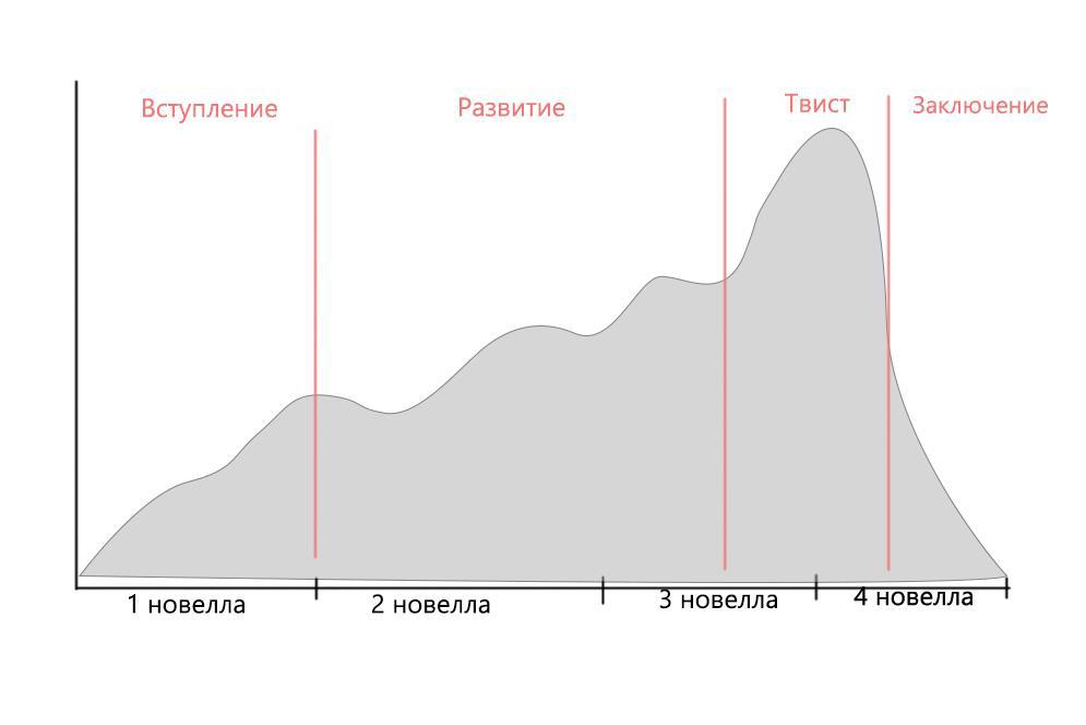 Завязка - Кульминация - Развязка. Все мы знакомы с этой стандартной европейской драматургической структурой, по которой строятся тысячи сюжетов. Но я пришла к выводу, что подробная схема совсем не подходит данному произведению и совершенно ничего не объясняет.