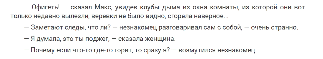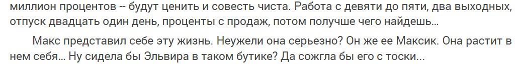 Тема ответственности звучит на страницах романа очень часто, но в каких поступках героев она раскрывается? Вот Макс – он работает в «магическом агентстве» то актёром, то альфонсом, и задумывается о том, чтобы оттуда уйти, но… принимает решение остаться, ибо обычная работа с 9 до 5 ему кажется скучной: