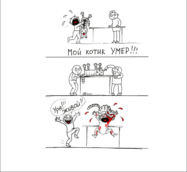 А те же сцены, которые сложно вписать в рамки ужасов, тоже вызывали смех, поскольку действительно были крайне забавными. Например, ловля барсов за хвост. Заодно приходит понимание, что особо ветврачи юных девиц не ценят, раз отправляют их чистить клетки с барсами.