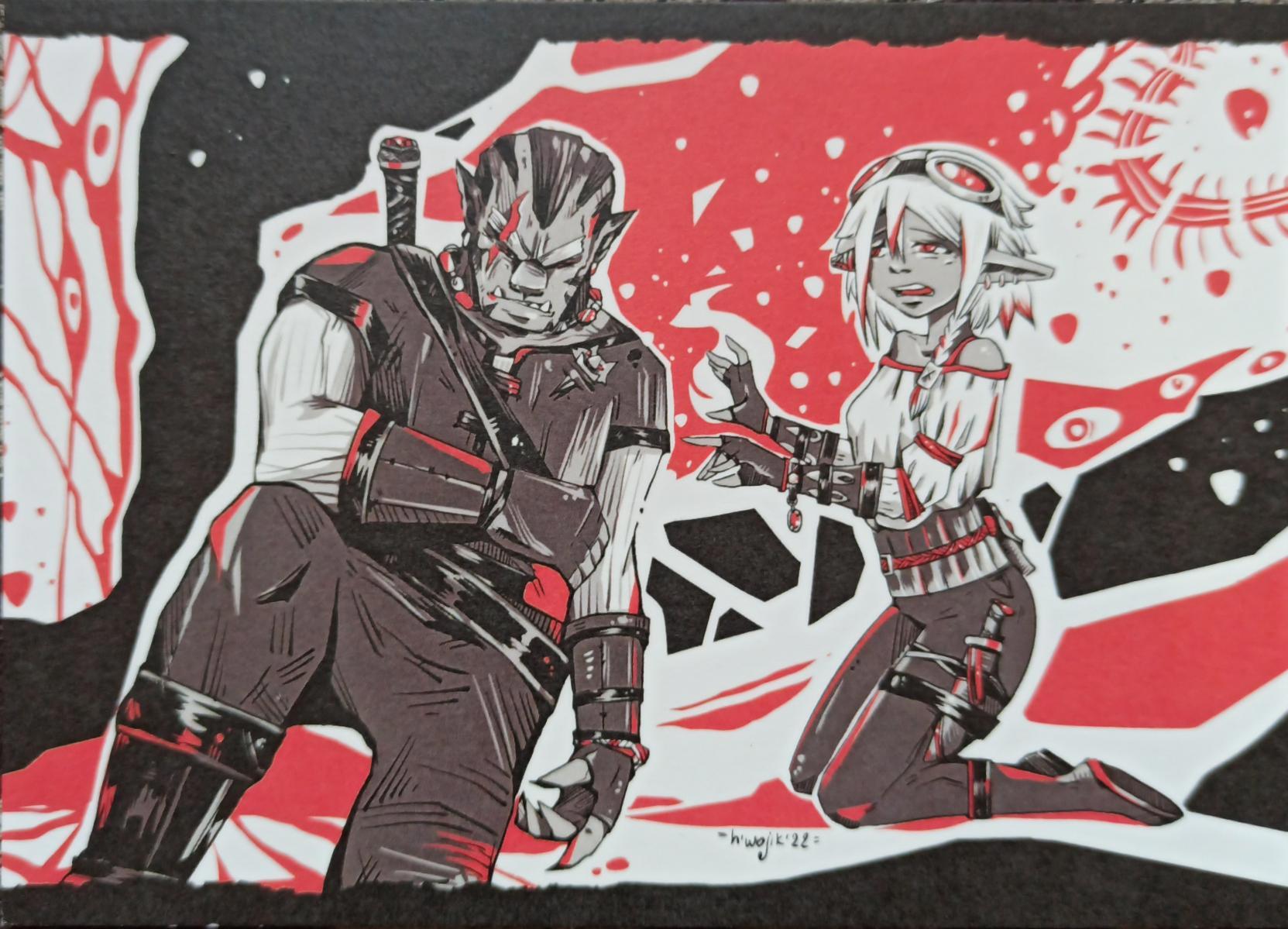 Кстати, сама пара приключенцев тоже не осталась без внимания, но здесь хотя бы можно привести их к общему знаменателю. Клыкарь, считающий любые проблемы на пятую точку всего лишь началом новых приключений с одной стороны романтичный авантюрист, а с другой истинный товарищ и настоящая скала. Не знаю, как это в нём совмещается ибо это же два противоположных характера.