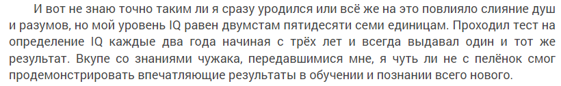 И в целом автор придерживается этого направления на протяжении всей книги. Но старт у ГГ эпический, не забываем! IQ, о котором я написал выше был первой ступенькой. Ещё есть персональный, единственный в мире ИИ, написанный ГГ и оттого полностью ему лояльный + стартовое наследство в виде пары заводов/производственных мощностей, которые ему выдали в качестве откупных при изгнании из Рода. И всё это в течении первых двух глав. И поверьте, в третьей тоже появляется кое-что весомое). Но спойлерить не буду, вдруг вы читать будете.