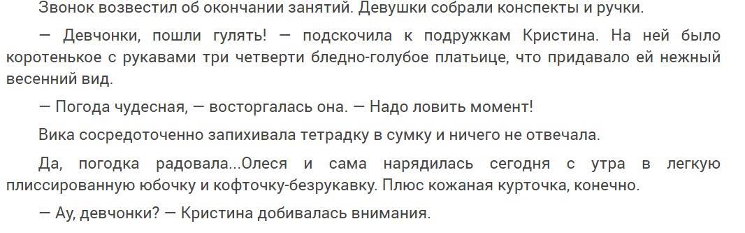 Роман написан бойким современным языком. Ашипки и очепятки встречаются, но до крови из глаз не доводят. Логика повествования не нарушена. Хотя в некоторых ситуациях поступки героев кажутся надуманными. Немного раздражало другое – неуместность некоторых сленговых словечек. Например: «…стебалась Олеся…». Я не ханжа и допускаю подобную лексику из уст героев (еще и покруче бывает, чего уж), но в тексте «от автора» такой пощечины как-то не хочется получать.