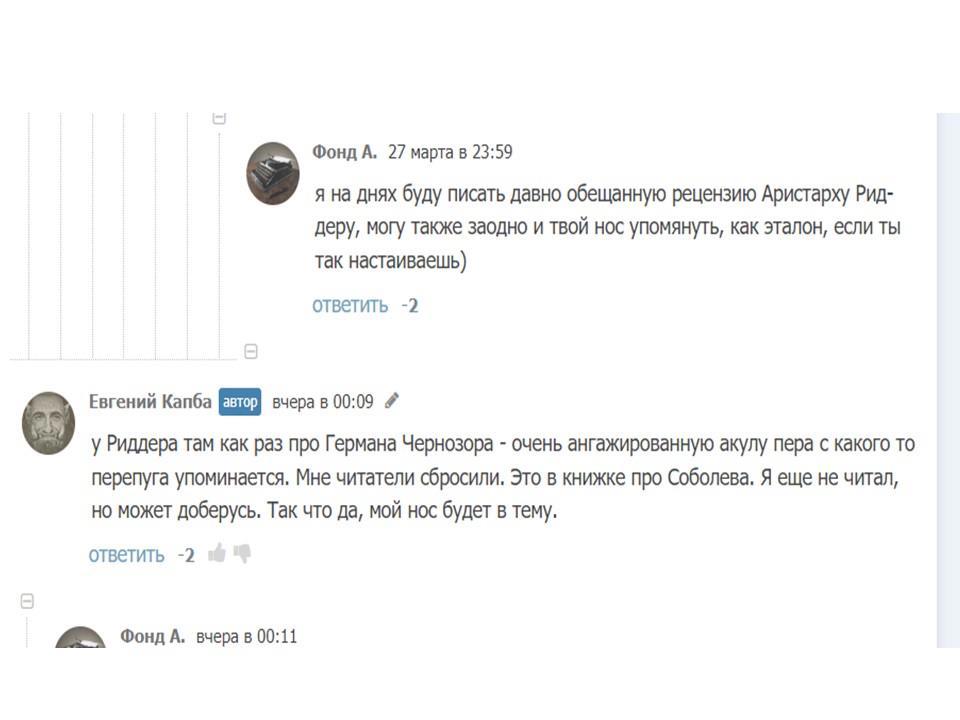 Итак, отсутствие упоминаний в тексте о носе Евгения Капба катастрофически обедняет структуру повествования и даже порой скатывает его до банальной колхозной бытовухи (с ностальгирующим оттенком). Ведь капбовский нос можно было бы и похвалить, что значительно повысило бы рейтинг произведения. Но спишем это на молодость авторов, они, видимо, просто не знают о таком мощном литературном приеме, как упоминание носа Евгения Капба в художественных произведениях о колхозных буднях. Остается только надеяться, что авторы возьмут мой совет на вооружение и в будущих произведениях такой досадной оплошности допускать больше не станут.