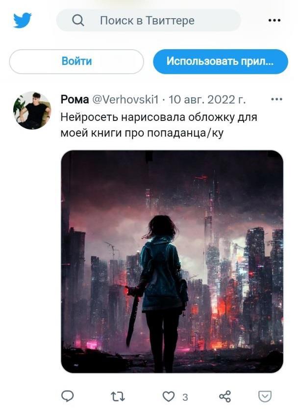 При создании ни один художник не пострадал. Картинку, если верить твиттеру автора, создала нейросеть. Правда, всё же подверглось фотошопу. Однако, суть это не сильно меняет и выглядит всё визуально вкусно, разве что, фамилию творец постеснялся указать. Сама же концепция и цветокор очень хороши. Здесь присутствуют добротные киберпанковские нотки, минус только в качестве. Видно, что пиксели разбежались.