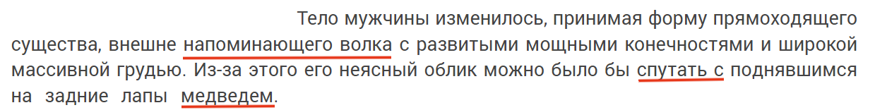 То есть тело мужчины напоминало волка, из-за этого его можно было спутать с медведем. Ага, ясно. Зверюги-то практически идентичные, практически как бегемот с гиппопотамом.