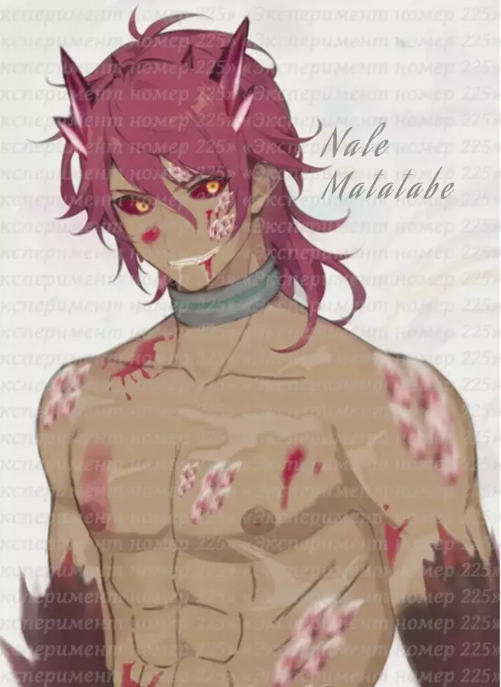 У него были отросшие тёмно-рыжие волосы багрового отлива, что доходили ему до плеч, смуглая кожа, усеянная множеством грубых шрамов, горящие озлобленные огненно-оранжевые глаза…