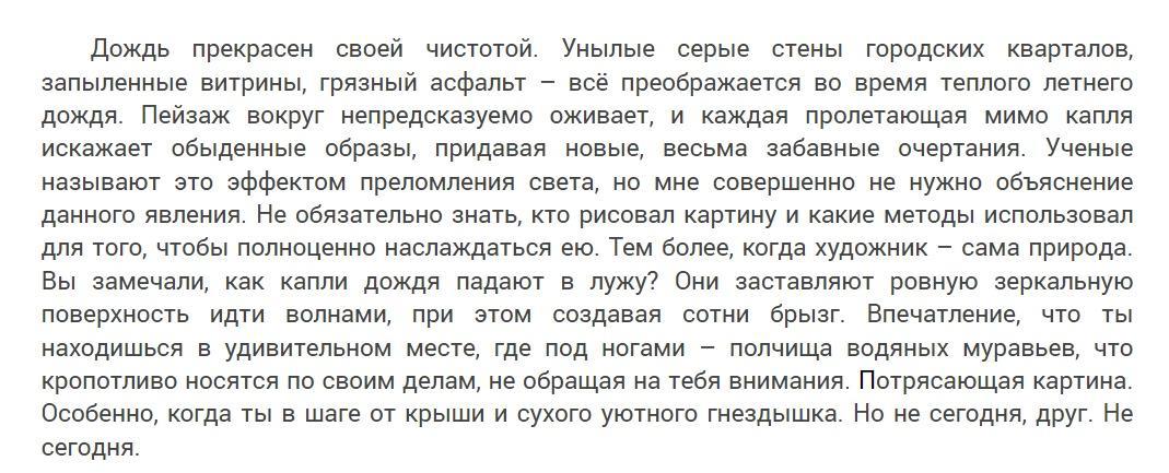 Но вернемся к сюжету. Главы по размеру разные, но смысла заложено в каждую очень много. Описания красоты природы, и всего происходящего точно не оставят равнодушными.