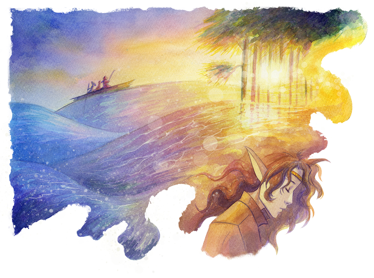 Свет и ветер, запах моря и хвои, блики солнца на речных волнах, лесные тропинки и воздушные корабли - полотно "Маяка ветров" сплетено из множества ярких нитей. Пространство повести очень живое и цельное - и, что важнее, всё, что окружает героев, продолжается и в повседневных мелочах, в их душах, историях. Историях очень личных, доверительных, и одновременно приоткрывающих панораму огромного мира. Вообще, то, как прописан мир, заслуживает отдельного упоминания - к этому я ещё вернусь позже. Но начану, наверное, с того, чьими глазами мы видим этот мир впервые, с того, перед кем этот мир распахивается всё шире с каждой главой.