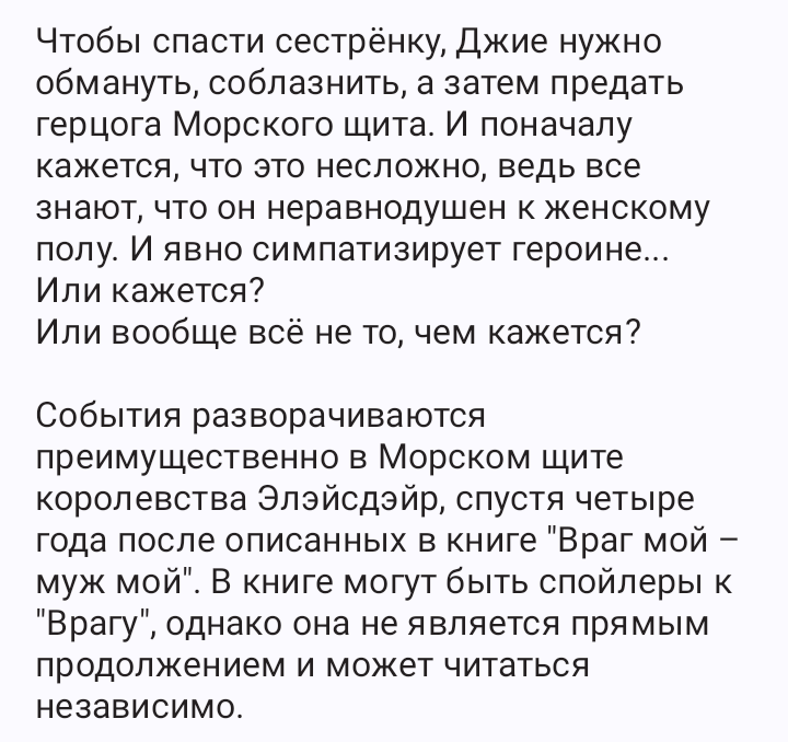 Куда ж без неё... Дерзкая, отчаянная и даже опасная Джия вполне во вкусе герцога, которому не привыкать ходить по лезвию ножа. Тем увлекательней игра...