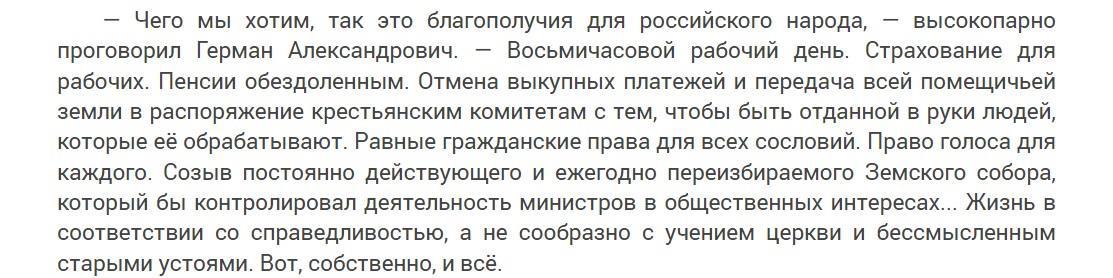 Интересно, что цели революционеры в романе ставят вполне разумные: