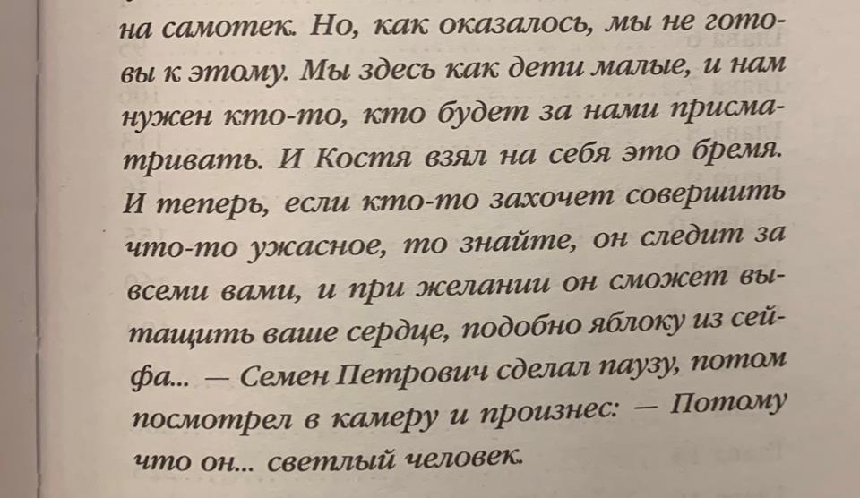 Но Максимов решил включить морализаторство и устами других героев поясняет, что благодаря тому, что гг убил генералов, хозяев табачных фабрик, преступников и еще кучу народу мир стал добрее и лучше и теперь больше никто не будет совершать плохих поступков.